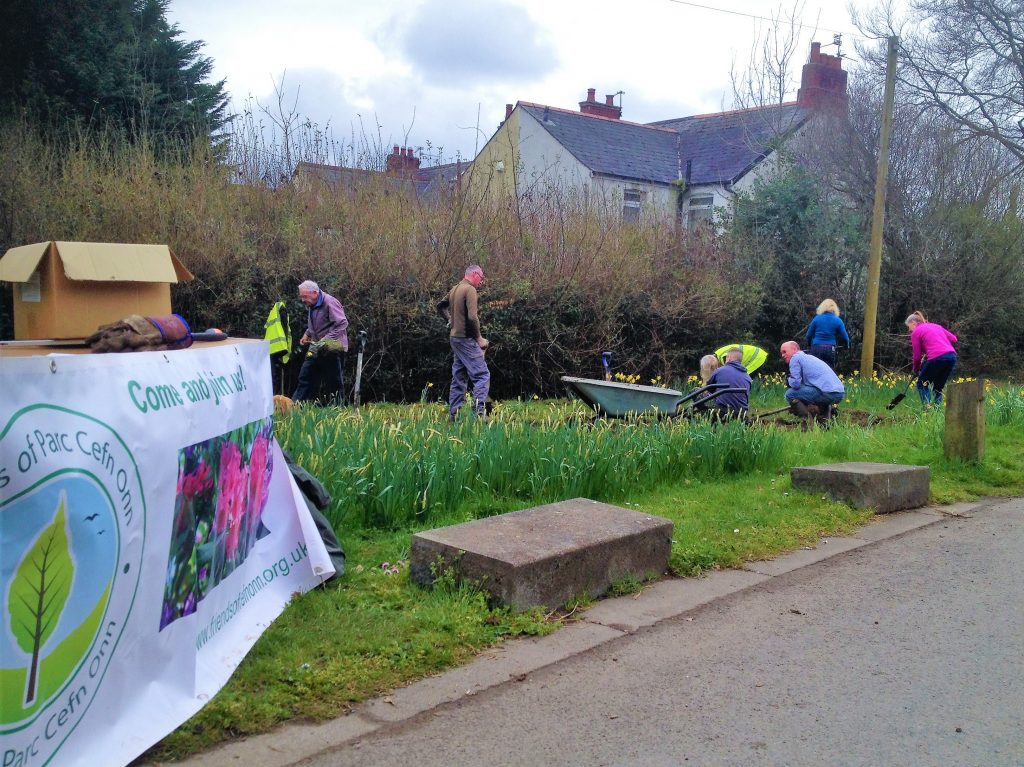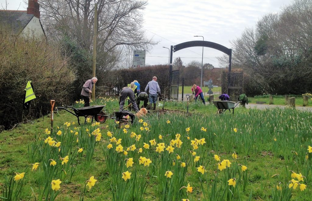 We had a great day amongst the budding daffodils in the entrance field on Sunday. In case you are wondering what we were doing/ what the 3 patches of dug over turf are for – we are planting wild flower beds to add more colour to the entrance area. Fingers crossed for a great display this summer.