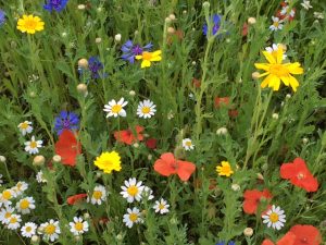 In our April Workday we dug over areas of the entrance field and planted a mix of wild flower seeds. Look what is blooming marvellous now when you enter the Parc!